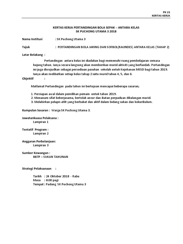 Contoh kertas kerja kokurikulum kertas kerja perkhemahan unit beruniform sekolah menengah kebangsaan jawi 14200 sungai. Pertandingan ini terbuka kepada semua murid di dalam setiap kelab dan persatuan. Kertas Kerja Bola Sepak JKKKP.
